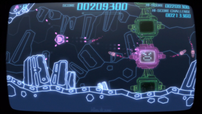 PixelJunk SideScroller is presented in a beautiful 1080p HD presentation. Design for most of the levels and enemies are a mix of wire frame light outlines. It’s definitely a treat when all sorts of pixel themed colors beautifully fly across your screen. High definition “retro style” design might sound like an oxymoron, but it’s still one that should be looked at. Looking at your screen with a distorted look, only to see that the distortion is actually an enemy, is a very nice effect. Sidescroller also supports surround sound which complements the game very nice.